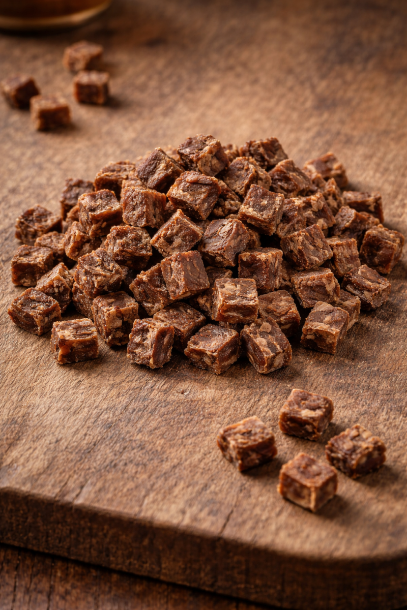 Ces friandises sont composées de 100% de viande, et donc faciles à digérer. ☀️A utiliser comme friandise classique, ou pour récompenser les ordres. 🥇 (idéal pour les cours d'éducation) 100 grammes, soit plus de 80 friandises. 🌱 Après ouverture du sachet, conservez les dans un endroit sec et à l’abri de l’humidité et du soleil. Ne laissez jamais votre chien sans surveillance lorsqu’il mange, mâche ou mastique. Attention à ce qu'il mastique correctement, ne gobe pas et n'avale pas de gros morceaux, il risquerait de revomir la friandise ou bien de s'étouffer. Laissez toujours de l’eau fraîche à disposition de votre animal. Attention à la protection de ressource si votre avez plusieurs animaux. Au besoin, séparez chaque animal dans une pièce lorsqu'ils mangent ou mastiquent. Les friandises étant naturelles, il est normal d’observer des différences de taille, de forme et de couleur d’un paquet à l’autre. Ce produit est une friandise, en aucun cas une source d’alimentation. Donnez comme collation ou récompense selon l’âge, le poids et l’activité de votre animal en ajustant en conséquence la ration de nourriture. Des sachets anti humidité peuvent être ajoutés dans les sachets, ceux ci ne sont pas comestibles et ne doivent pas être donné à l'animal. L'équipe de Pavicha'Sweet ne pourra être tenue pour responsable en cas d'accident, d'intolérances ou d'allergies à l'aliment, de vomissements ou de diarrhées.