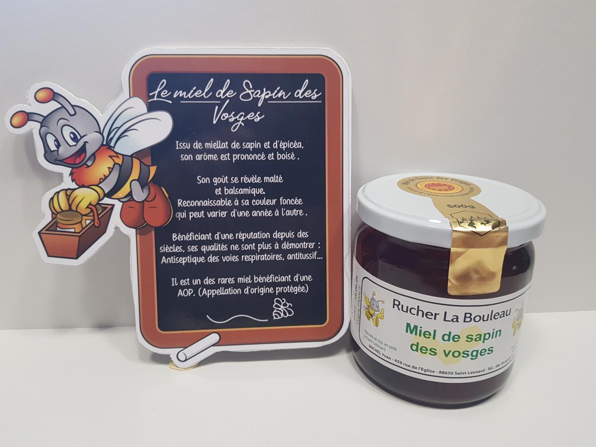 Issu de miellat de sapin son arôme est prononcé et boisé. Reconnaissable à sa couleur foncée qui peut varier d'une année à l'autre.
