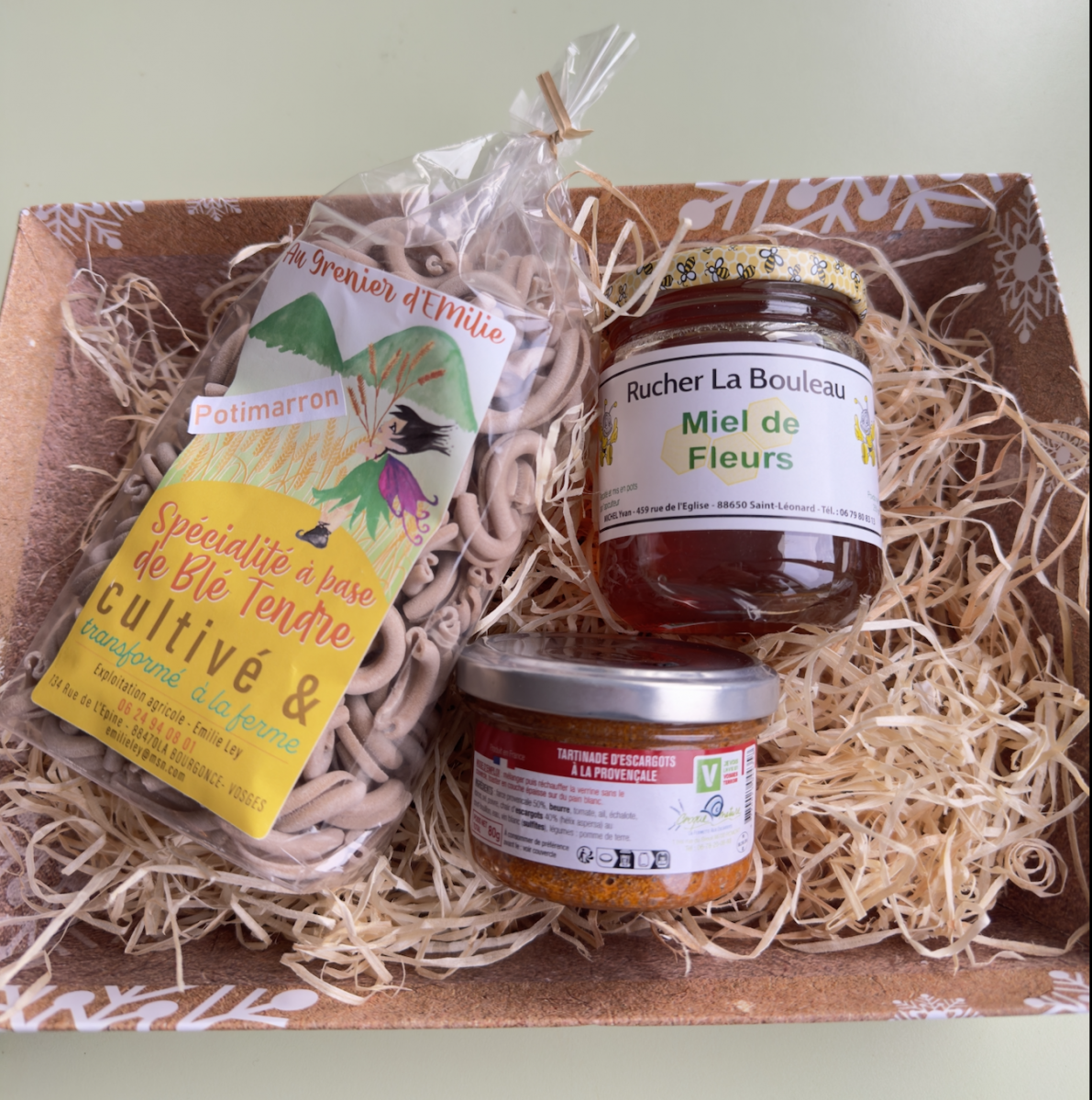 Découvrez notre panier garni composé de délicieux produits locaux :