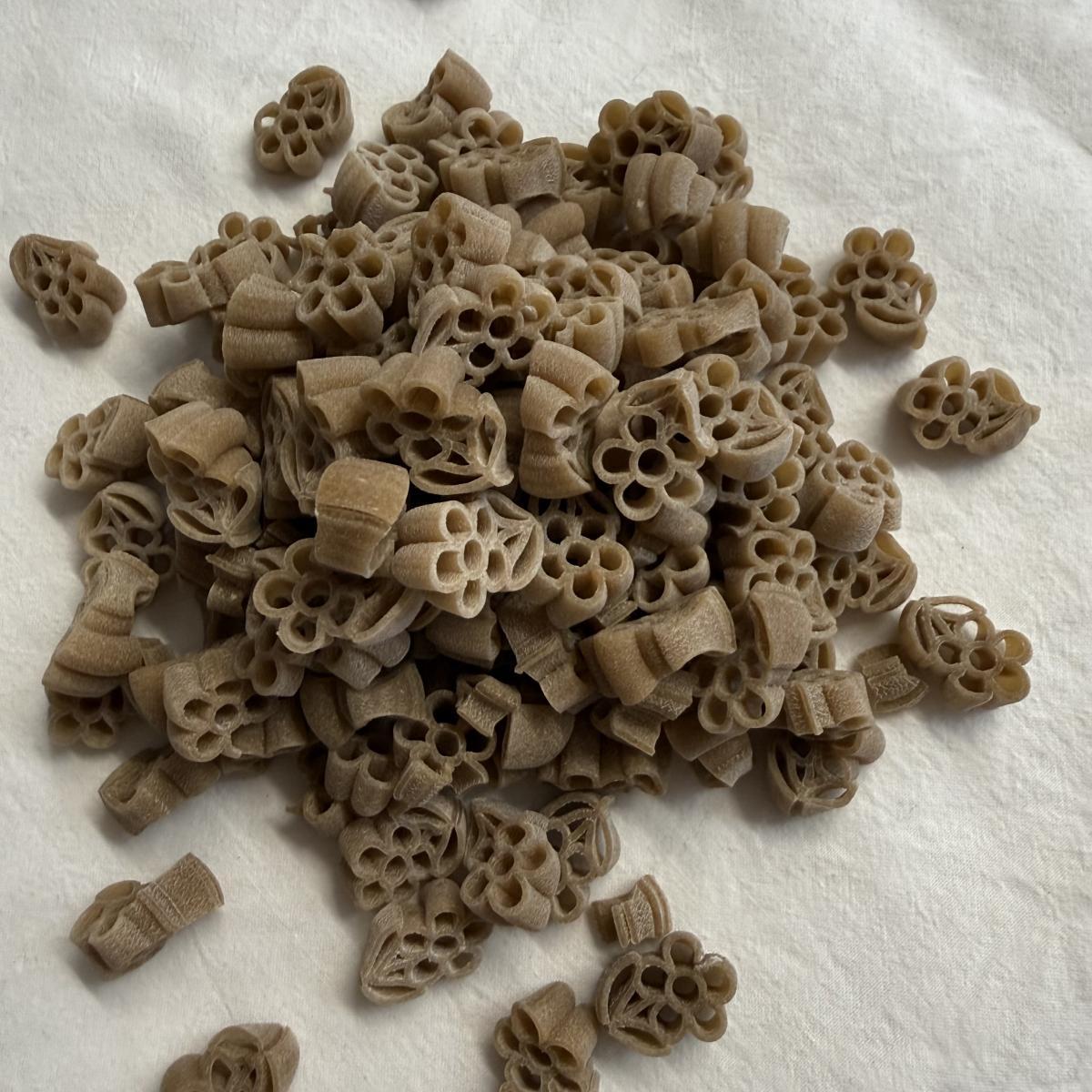 Spécialité à base de blé tendre transformée a la ferme, blé cultivé en agriculture raisonnée, séchage lent à basse température.