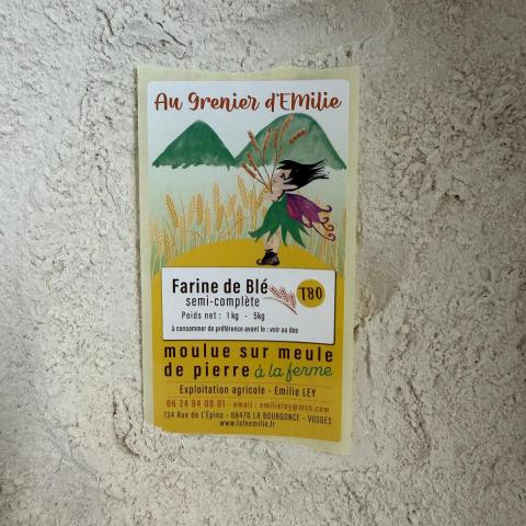 Farine de blé moulue sur meule de granit, provenant du domaine KRUST,agriculteur en biodynamie à BERRWILLER.