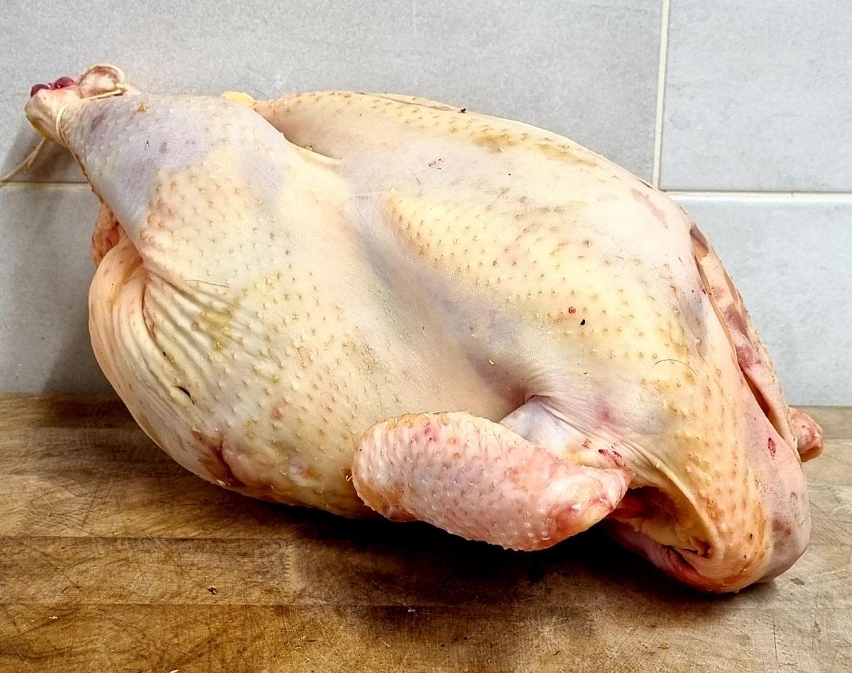 Volaille élevée à la ferme et terminée au maïs et au lait. Une poularde de 2kg est prévu pour 6 personnes. Elle est présentée entière, vidée, avec les abats et elle est prête à cuire. Comptez 2h30 pour la cuire au four. Petite astuce : faites un bouillon pour pocher votre volaille 1/2h avant de le mettre au four, elle sera encore plus moelleuse !