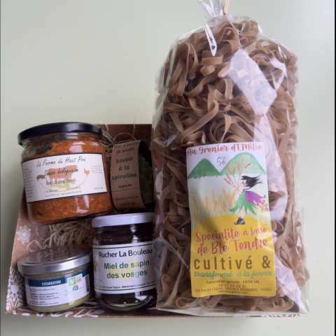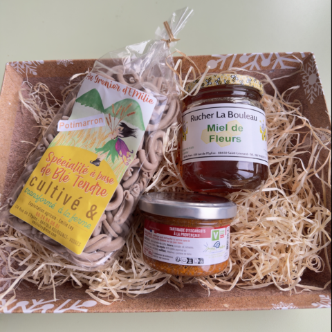 Découvrez notre panier garni composé de délicieux produits locaux :