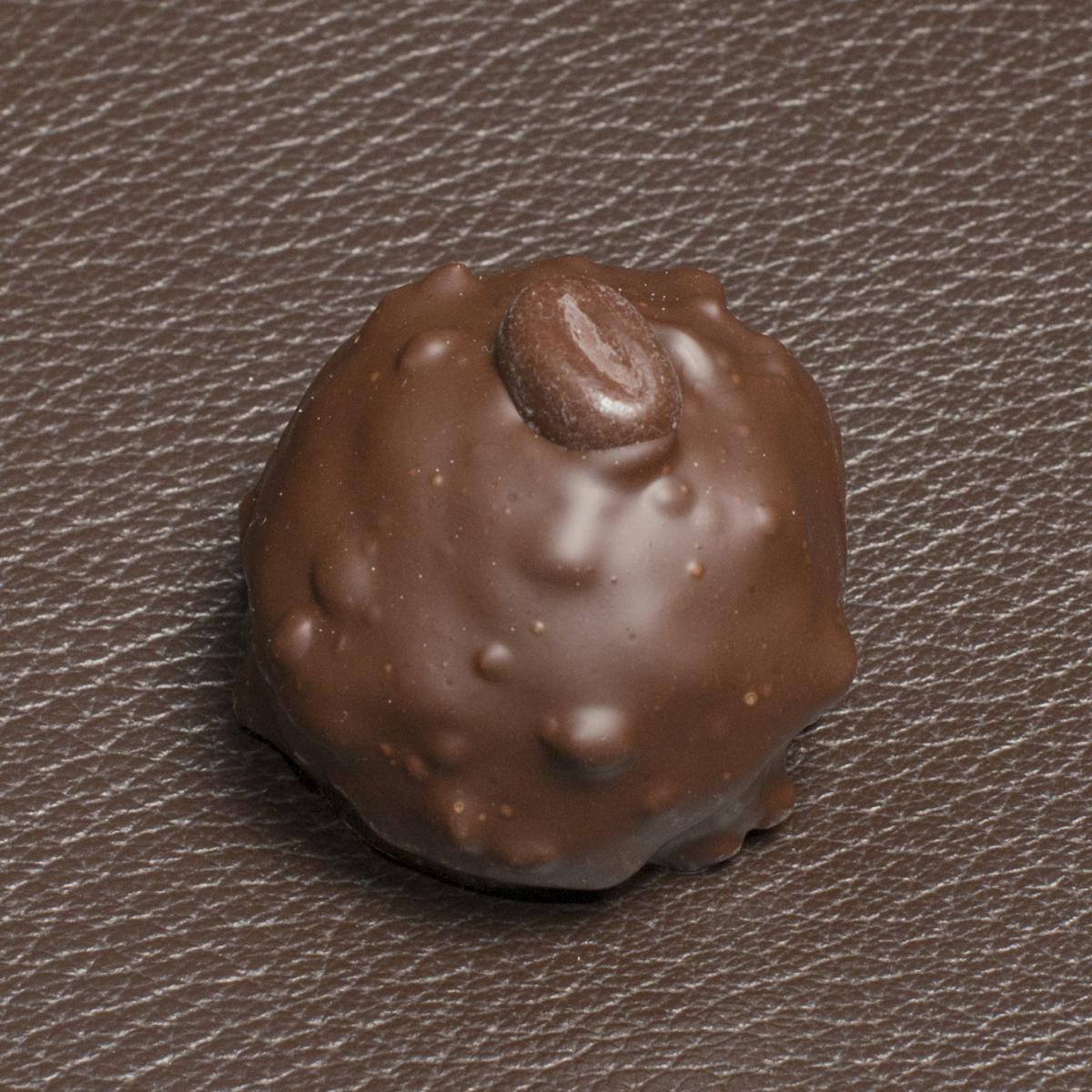 Composition: Beurre de cacao 64% minimum, pâte de cacao, sucre, émulsifiant : lécithine de tournesol, arôme naturel de vanille. Praliné : AMANDE, NOISETTES, huile d’AMANDE raffinée, lécithine de SOJA, arôme vanille