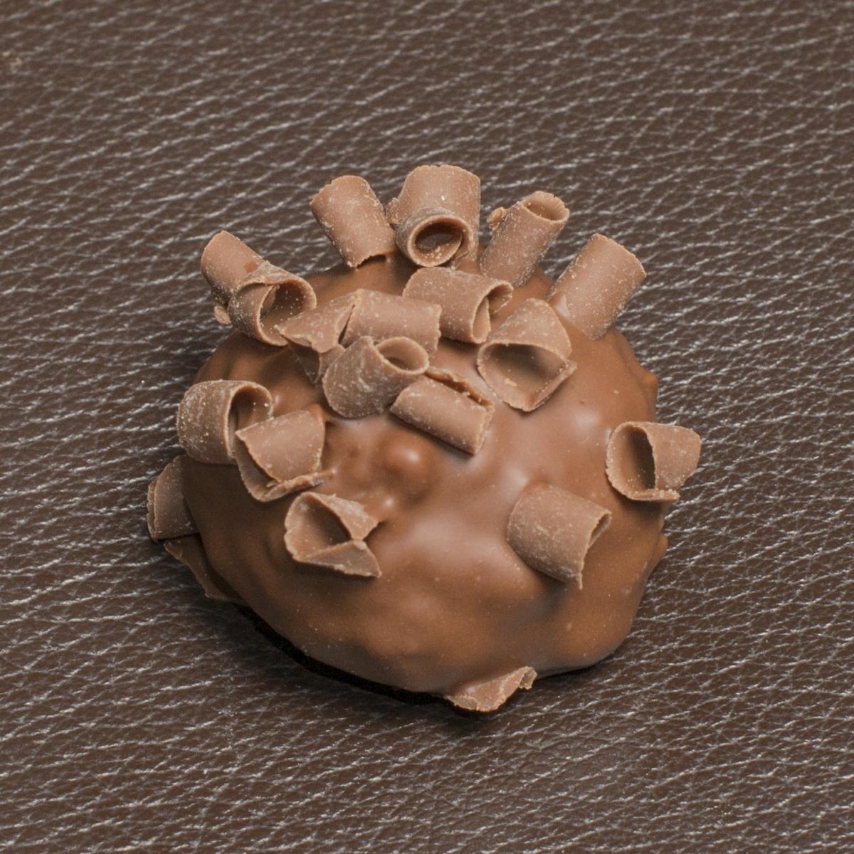 Composition: Beurre de cacao 38% minimum LAIT entier en poudre, poudre de LAIT écrémé, matière grasse de LAIT, sucre, beurre de cacao, émulsifiant : lécithine de tournesol, Praliné : AMANDES, NOISETTES, huile d’AMANDE raffinée, lécithine de SOJA, arôme vanille
