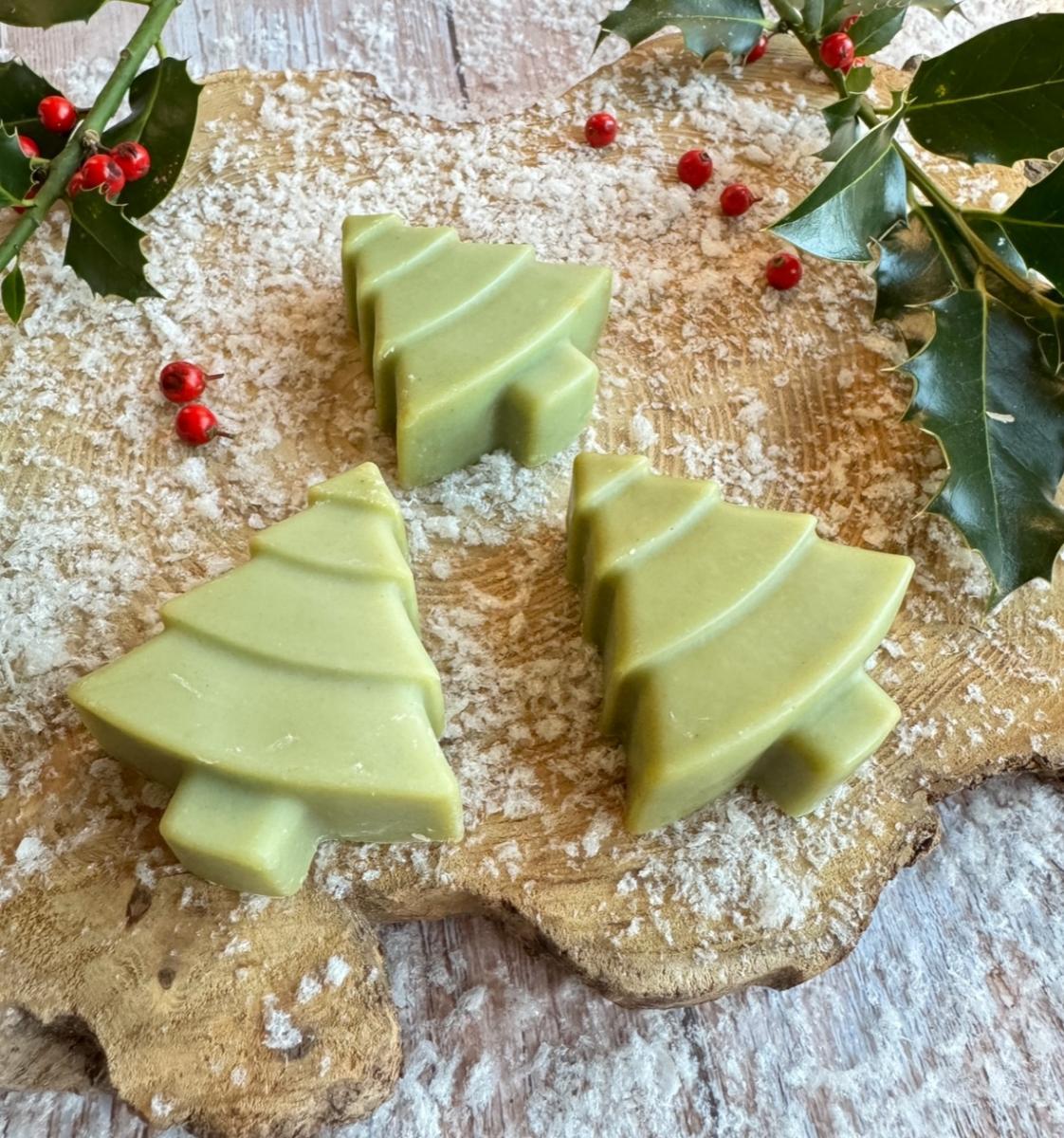 Savon en forme de sapin à la poudre de spiruline (de la société SOMAIA, Sainte marguerite), visage ou corps, surgras 8%